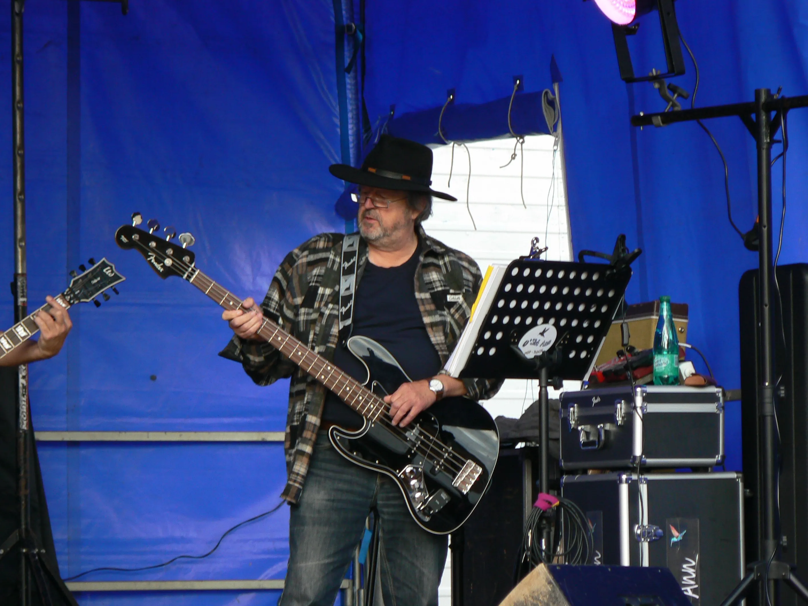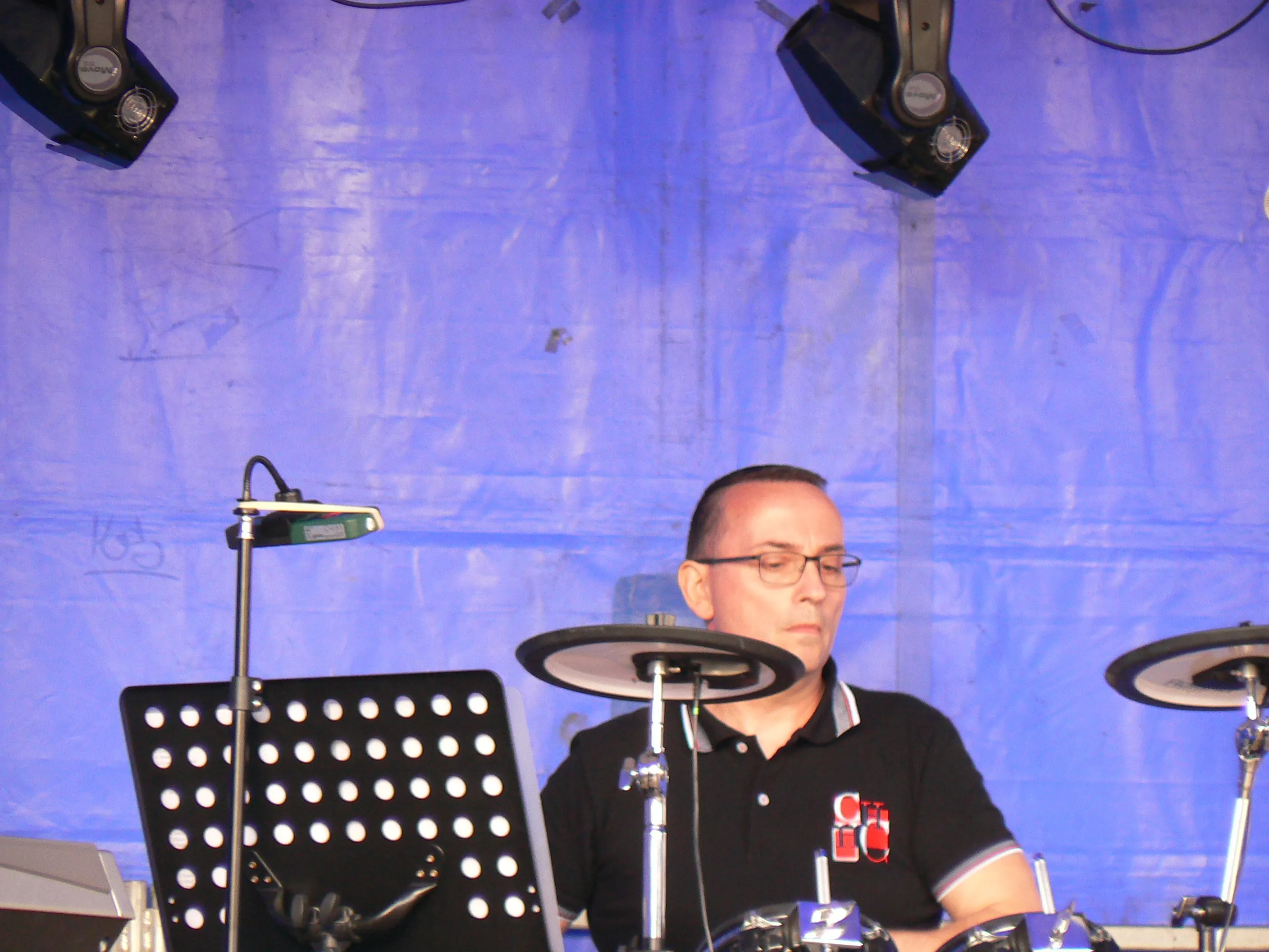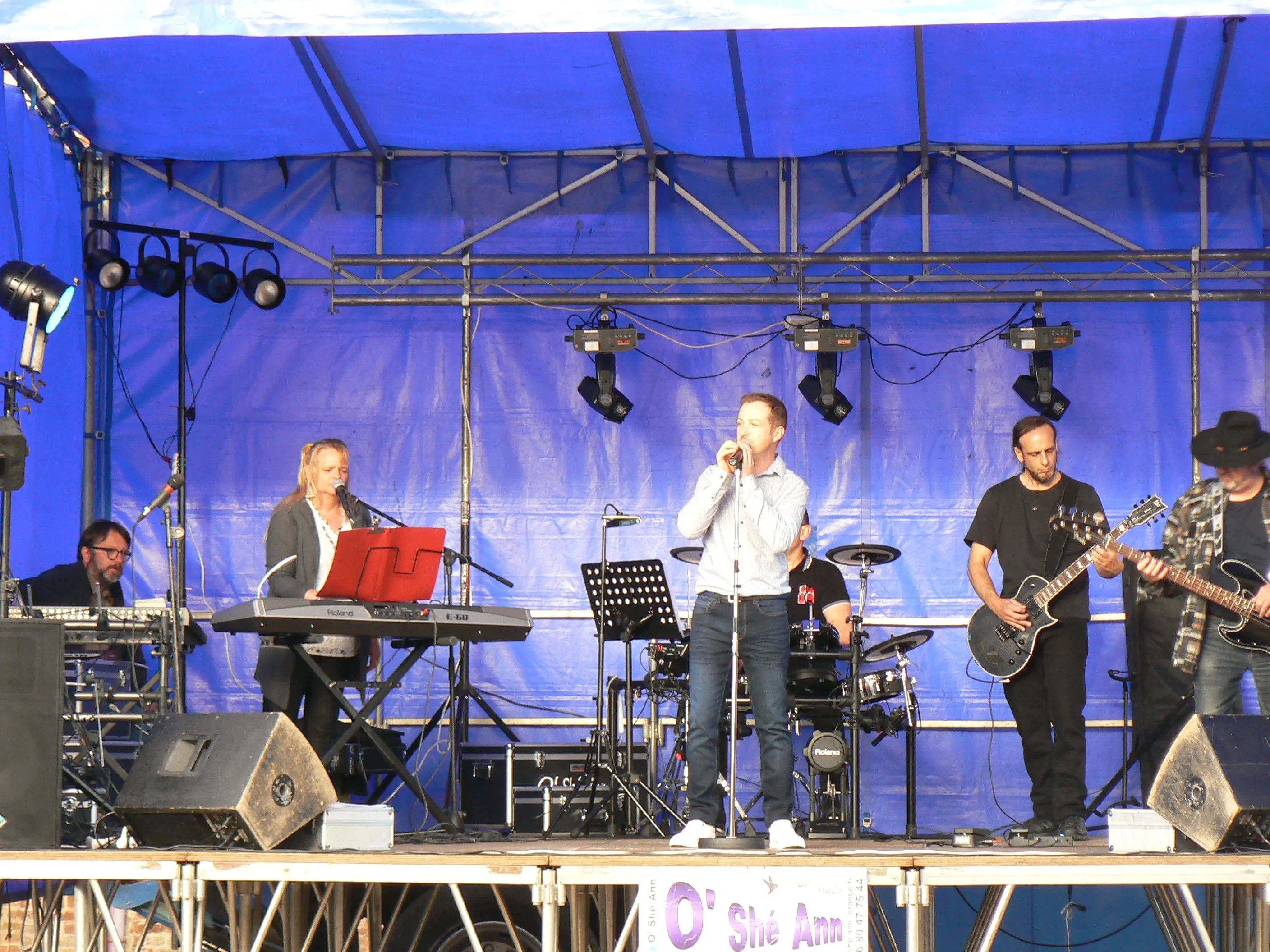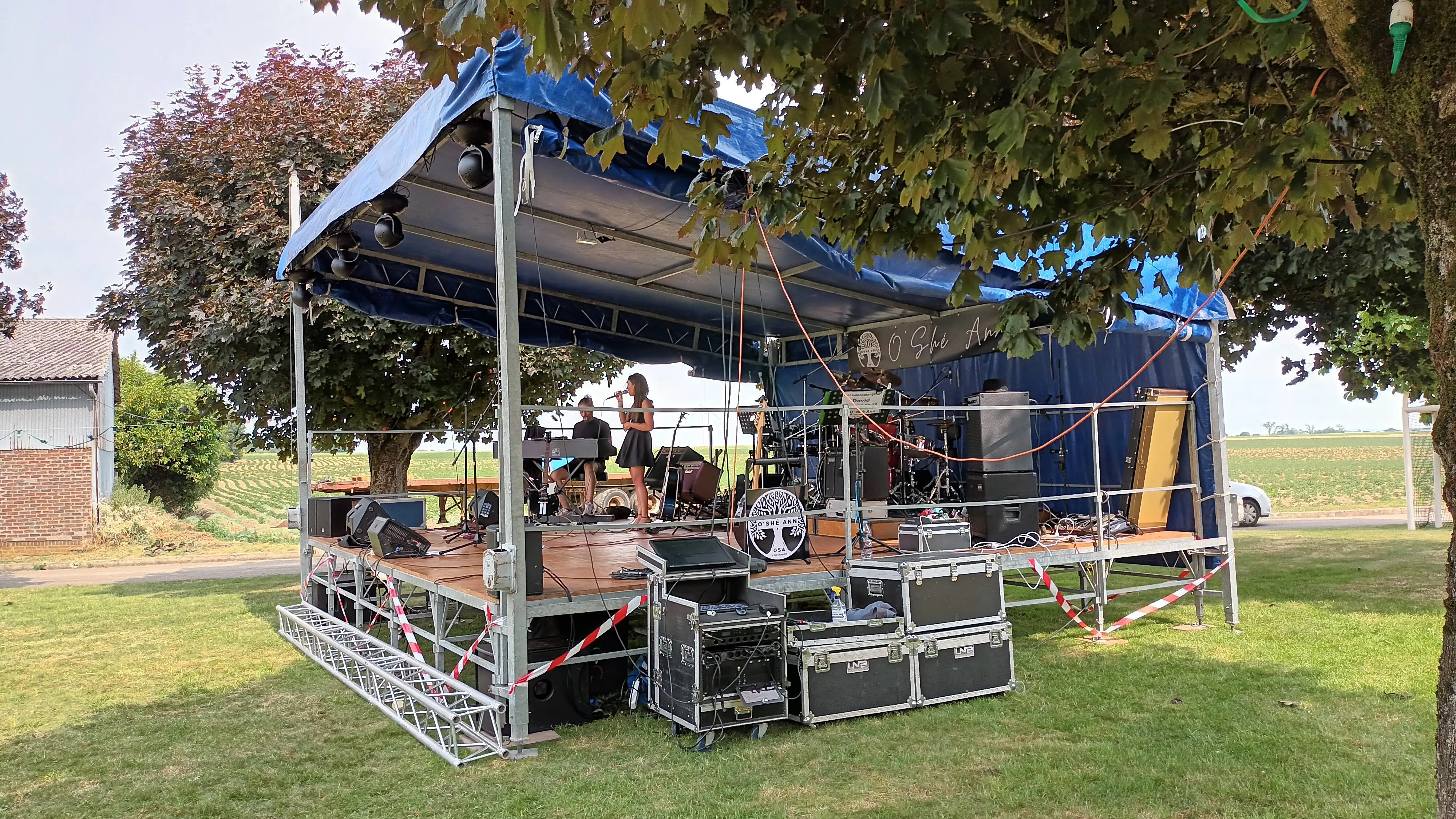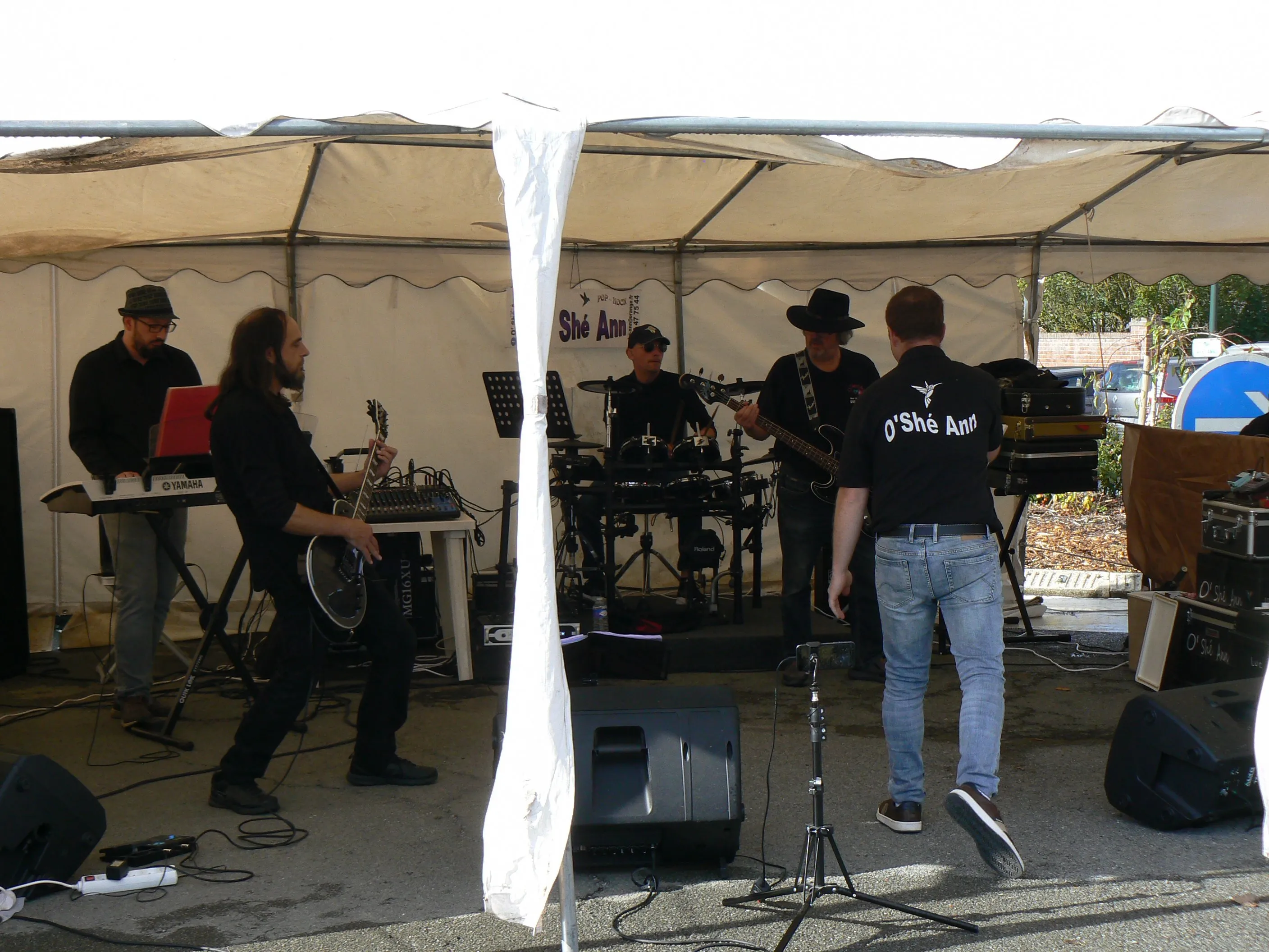 Il est temps, car bien que protégés par un immense barnum de 72 m2, les musiciens commencent à avoir les pieds mouillés par le ruissellement des eaux de pluie et il est grand temps de débrancher les amplis.