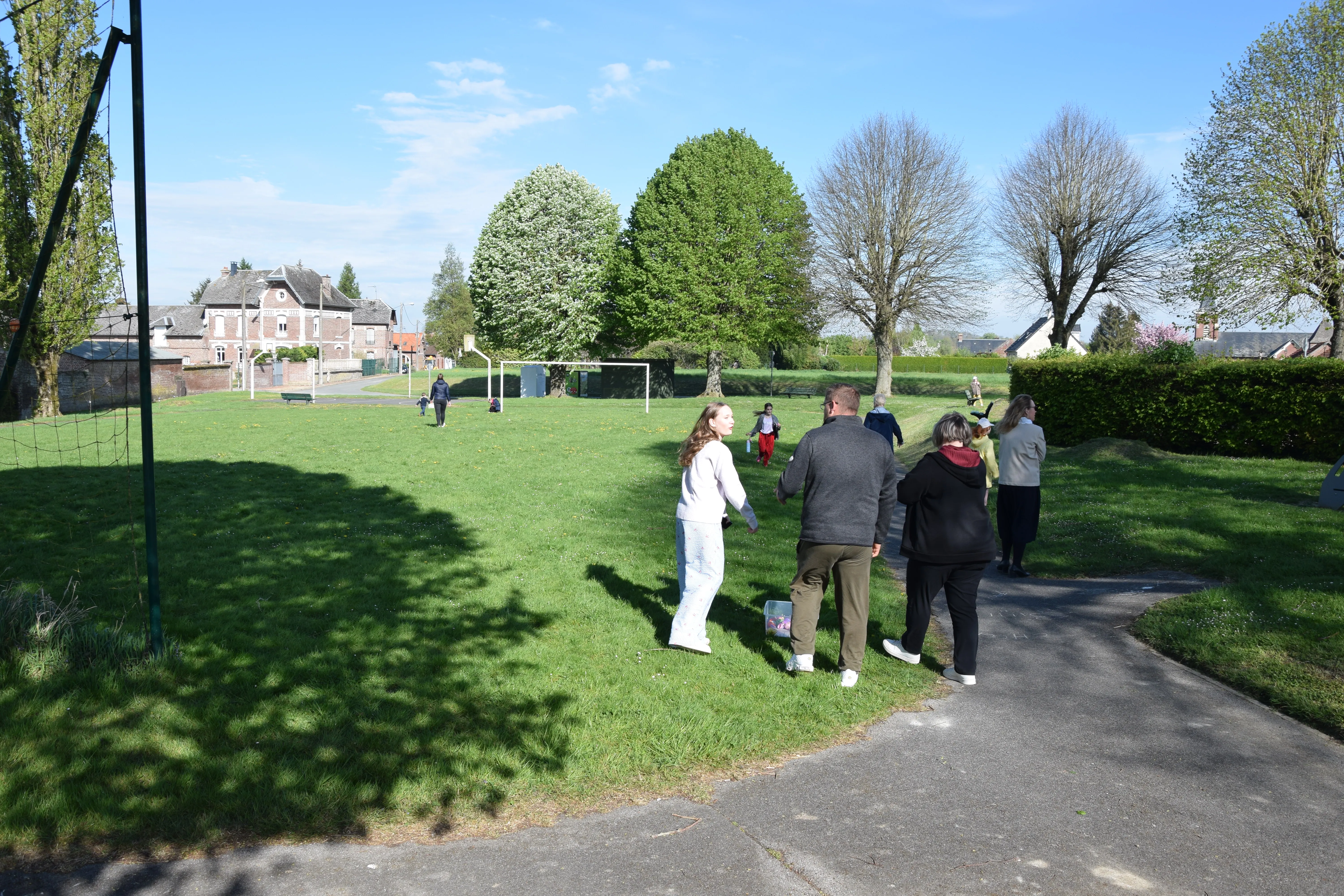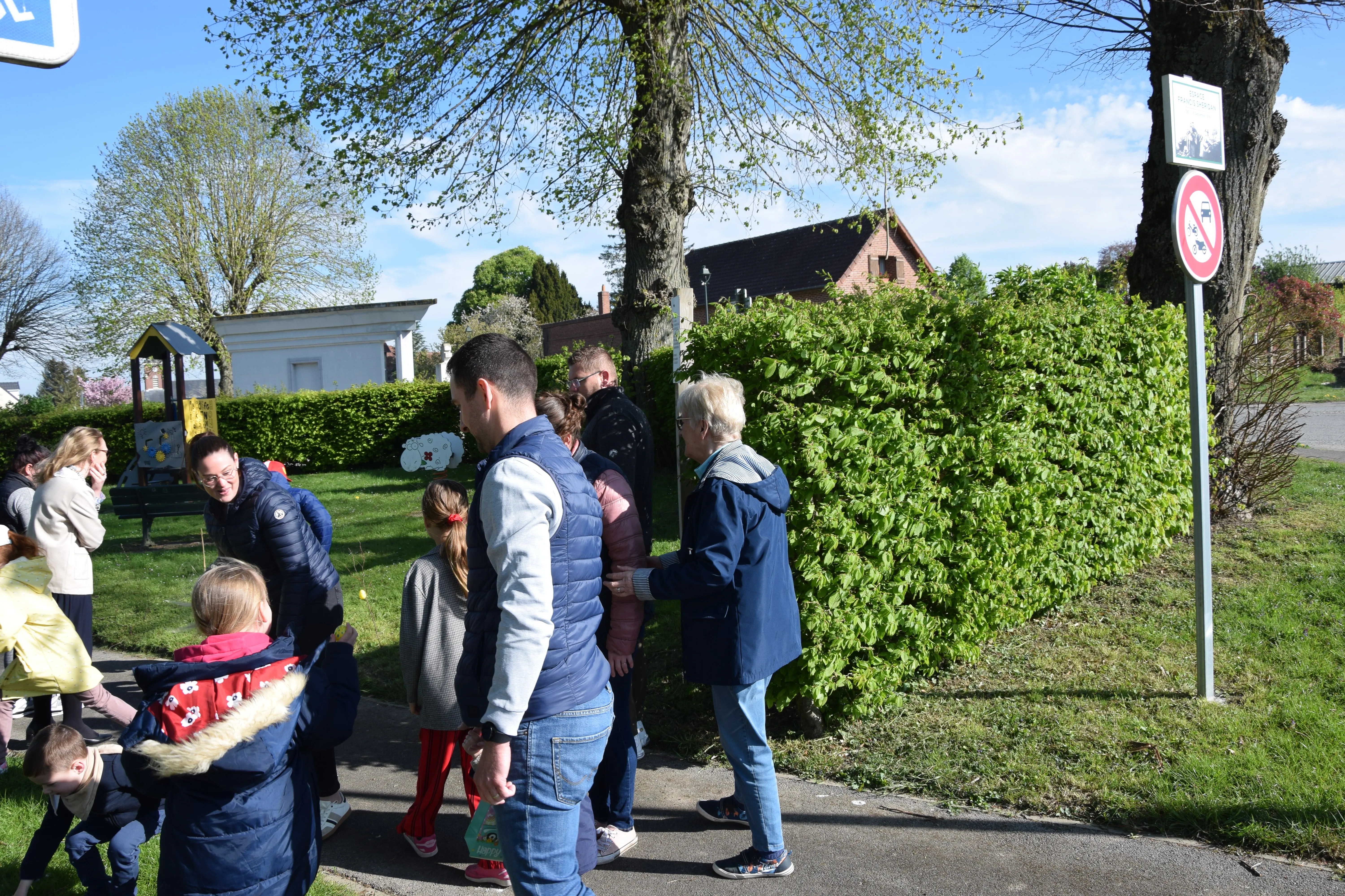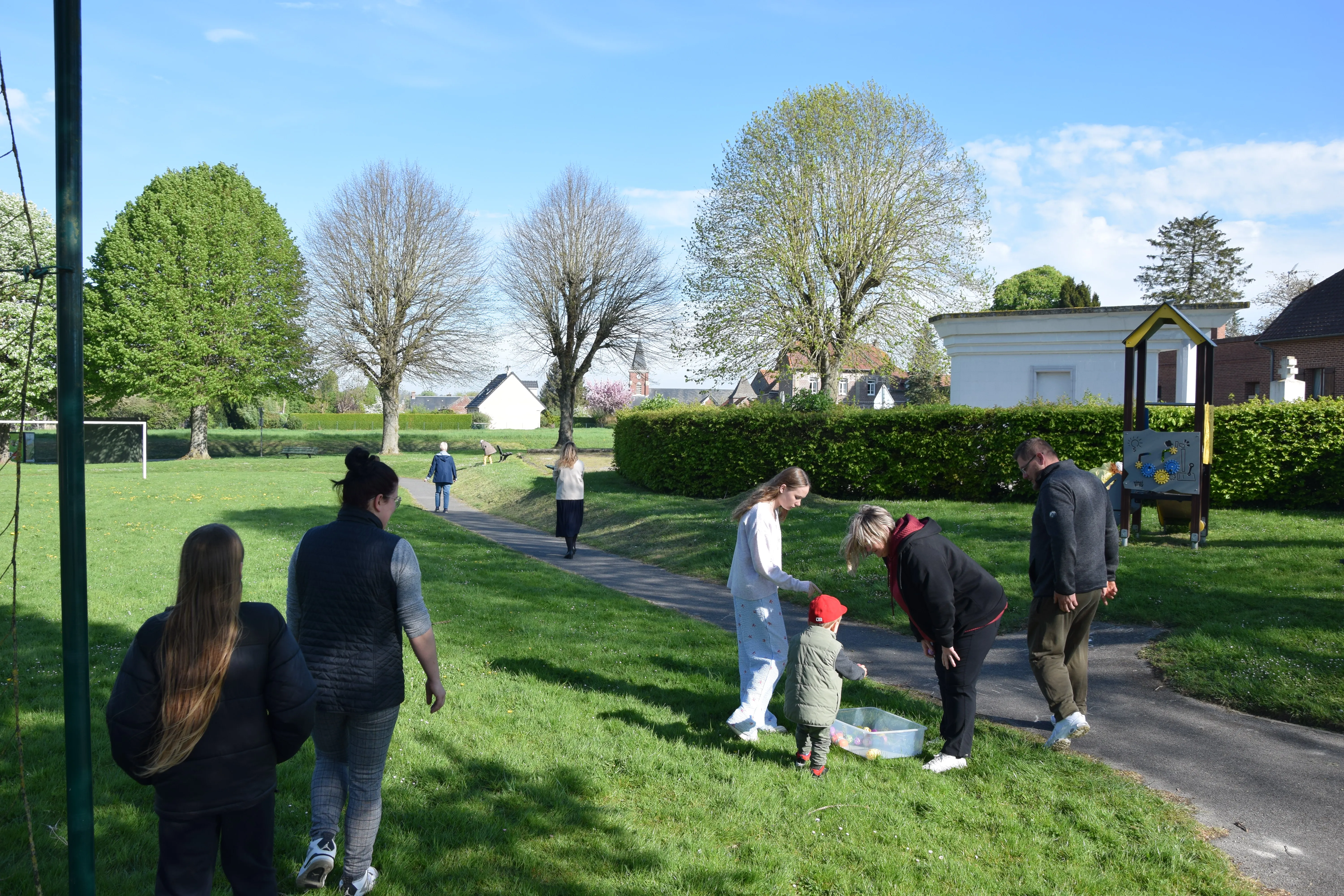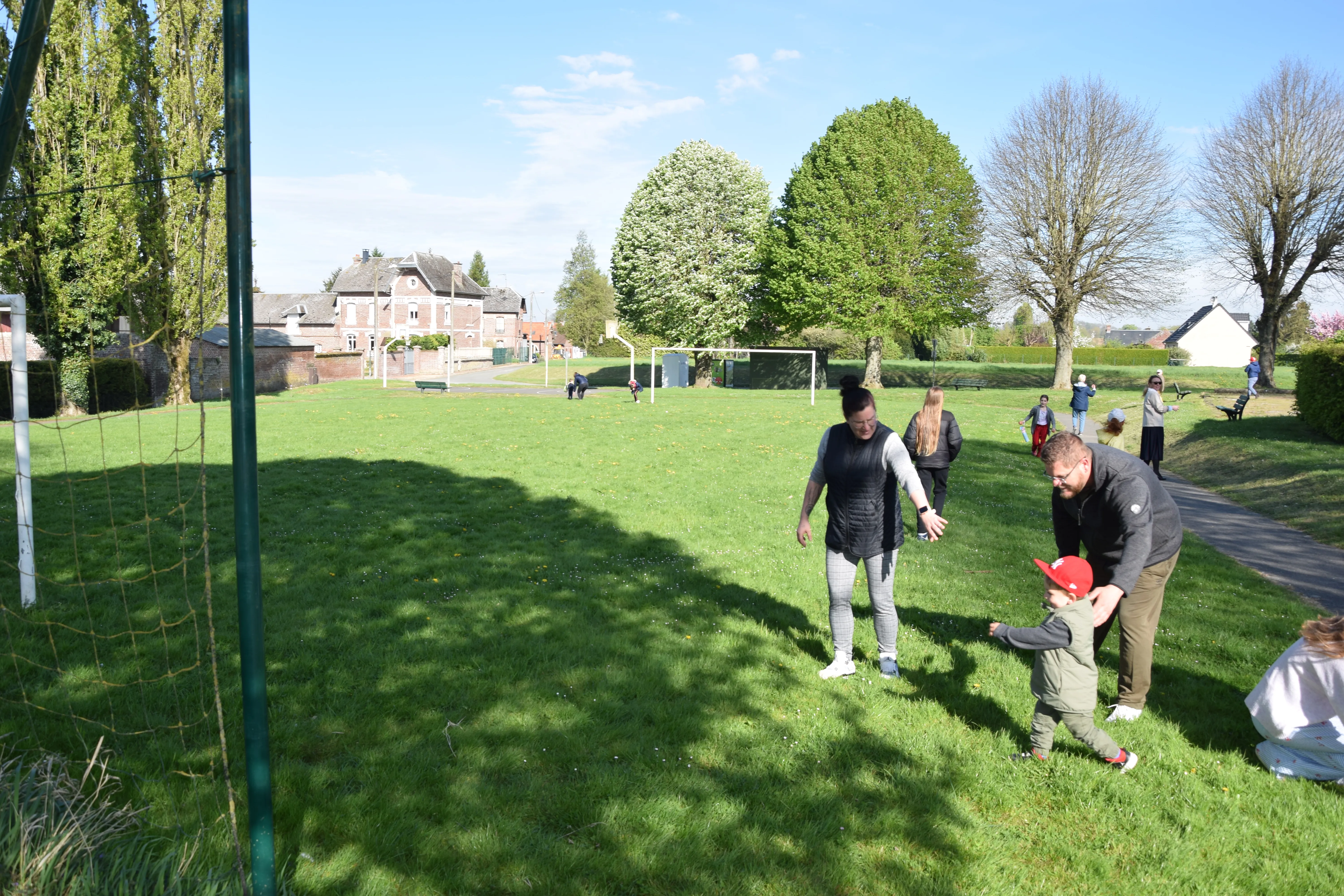 Une quinzaine d'enfants, accompagnés des parents ont participé à la chasse aux œufs sur le terrain de Francis SHERIDAN.