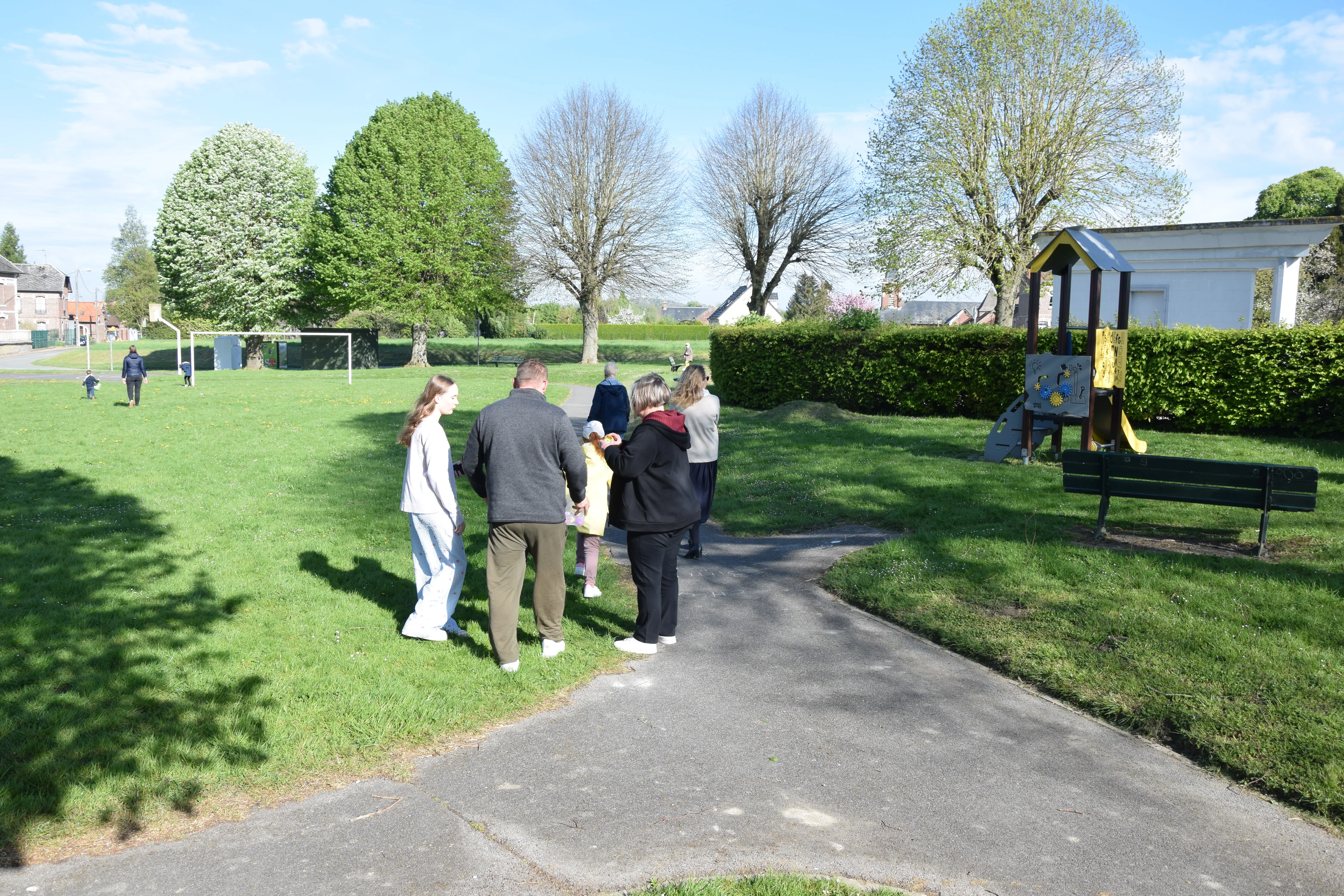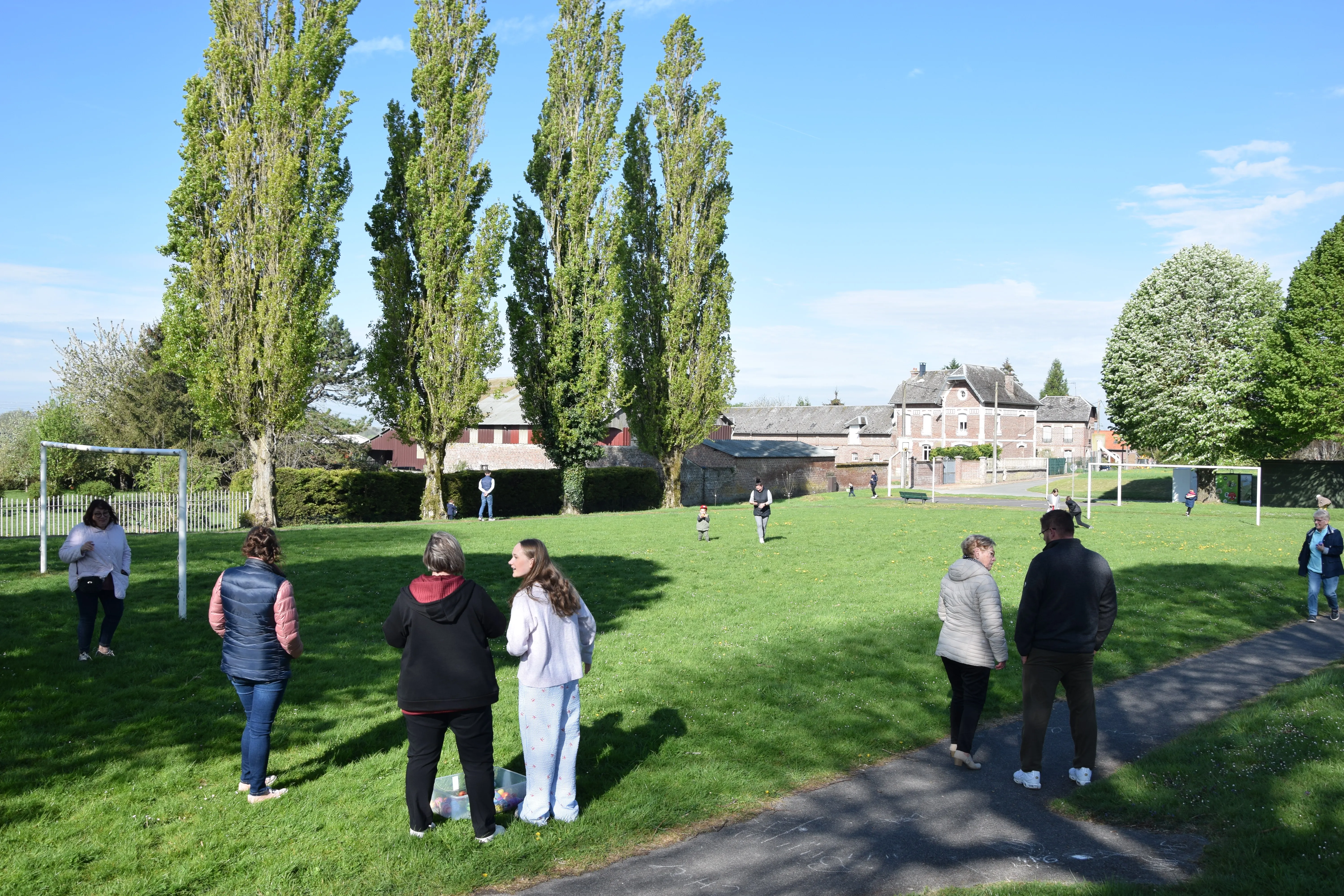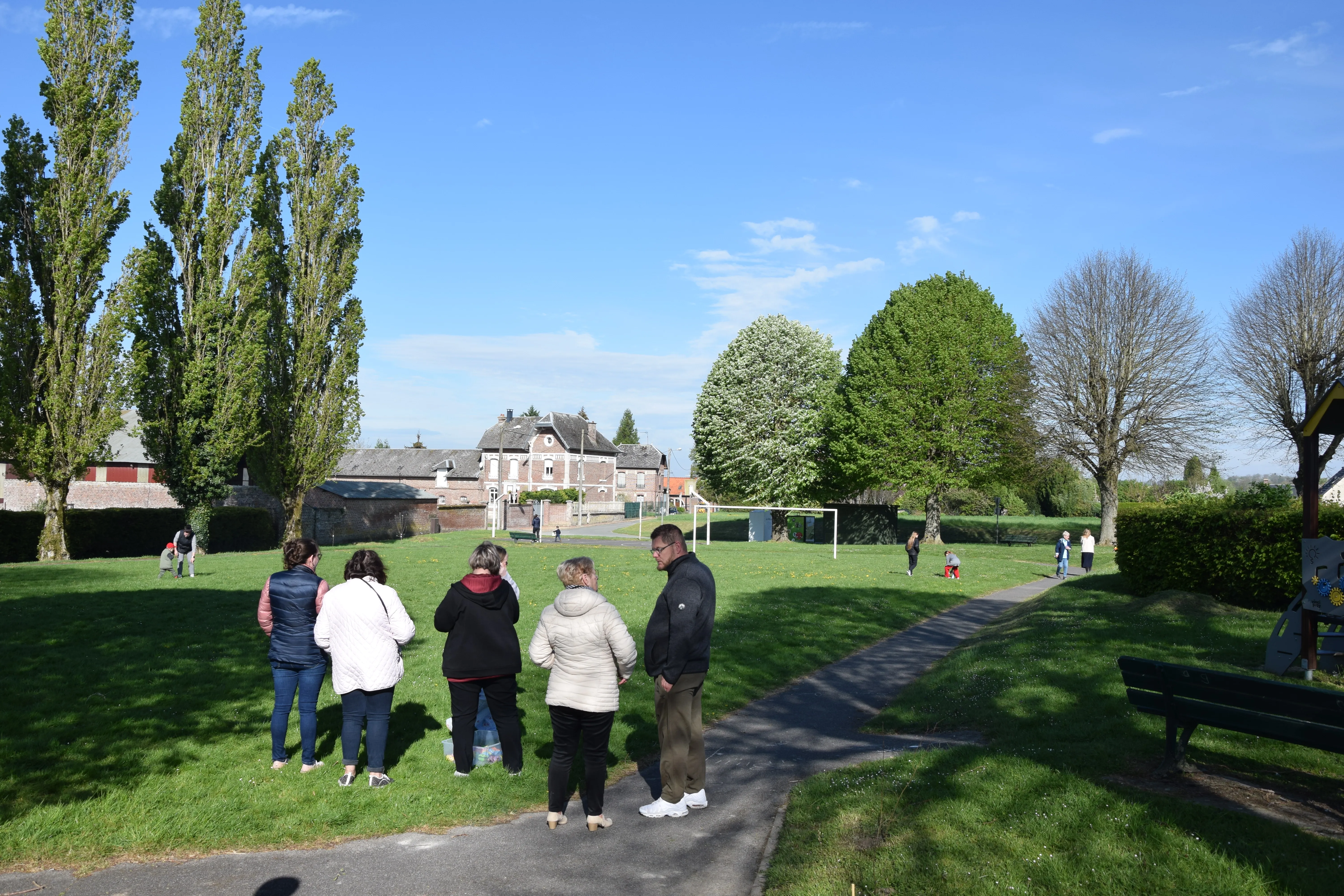 Une quinzaine d'enfants, accompagnés des parents ont participé à la chasse aux œufs sur le terrain de Francis SHERIDAN.