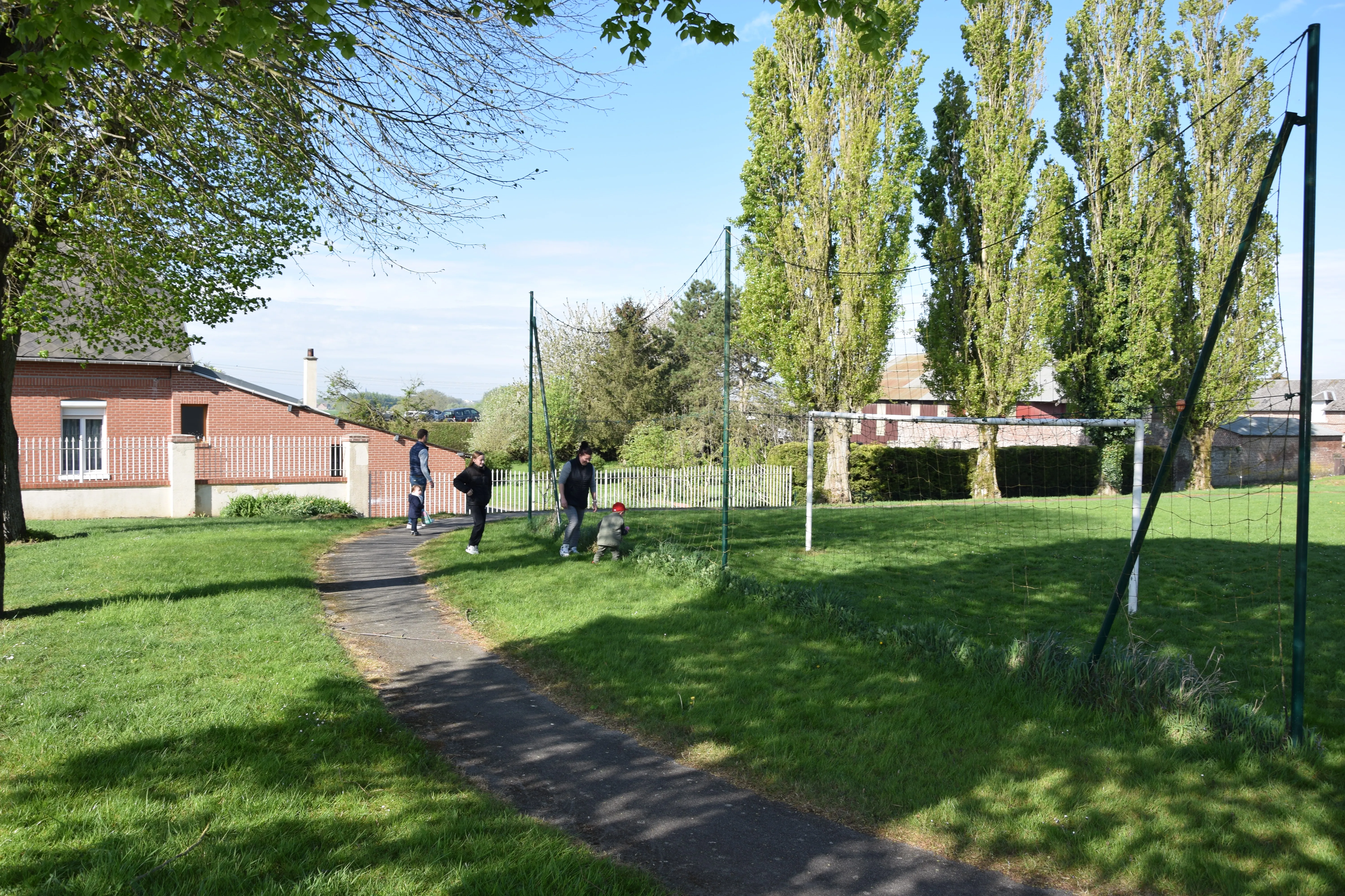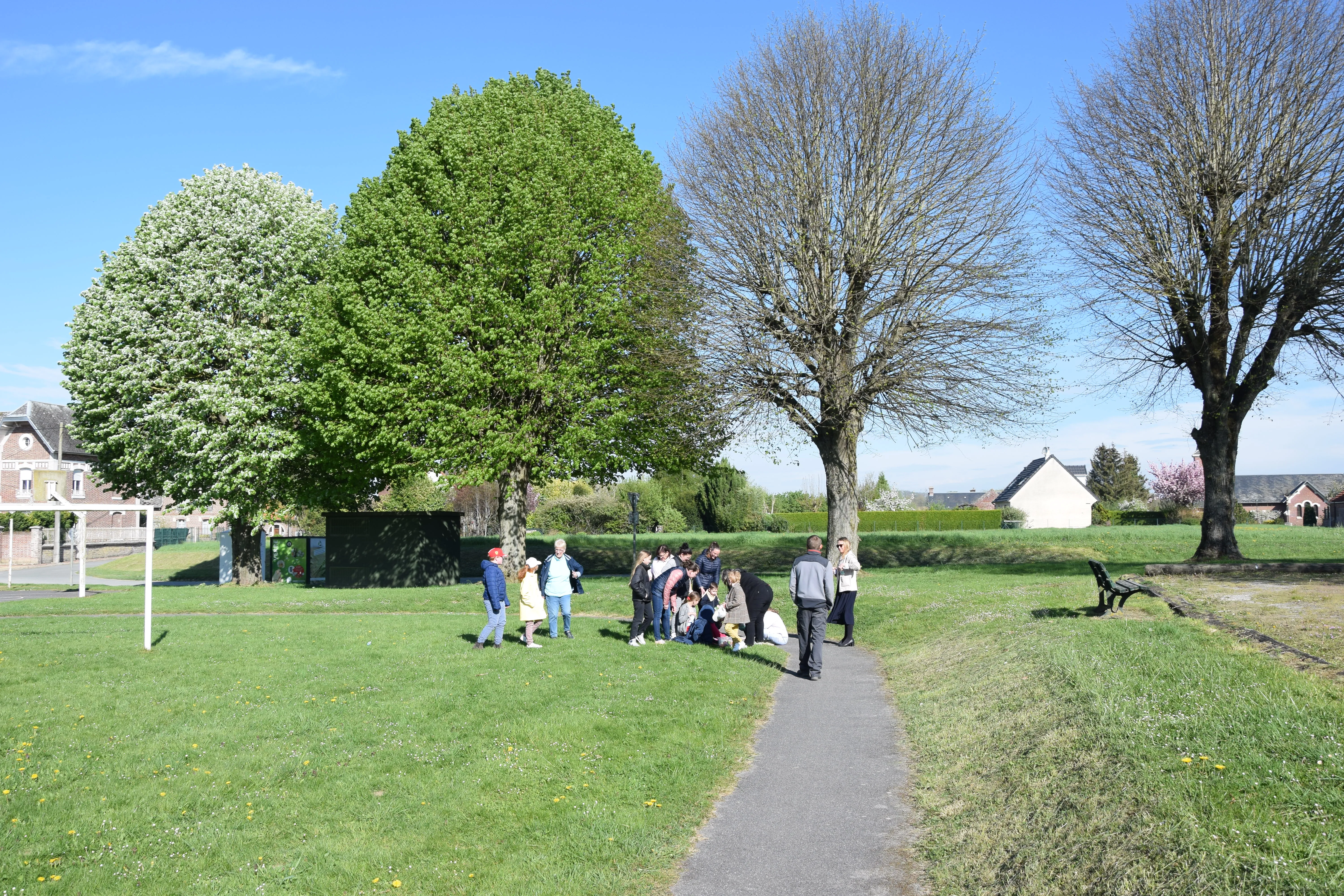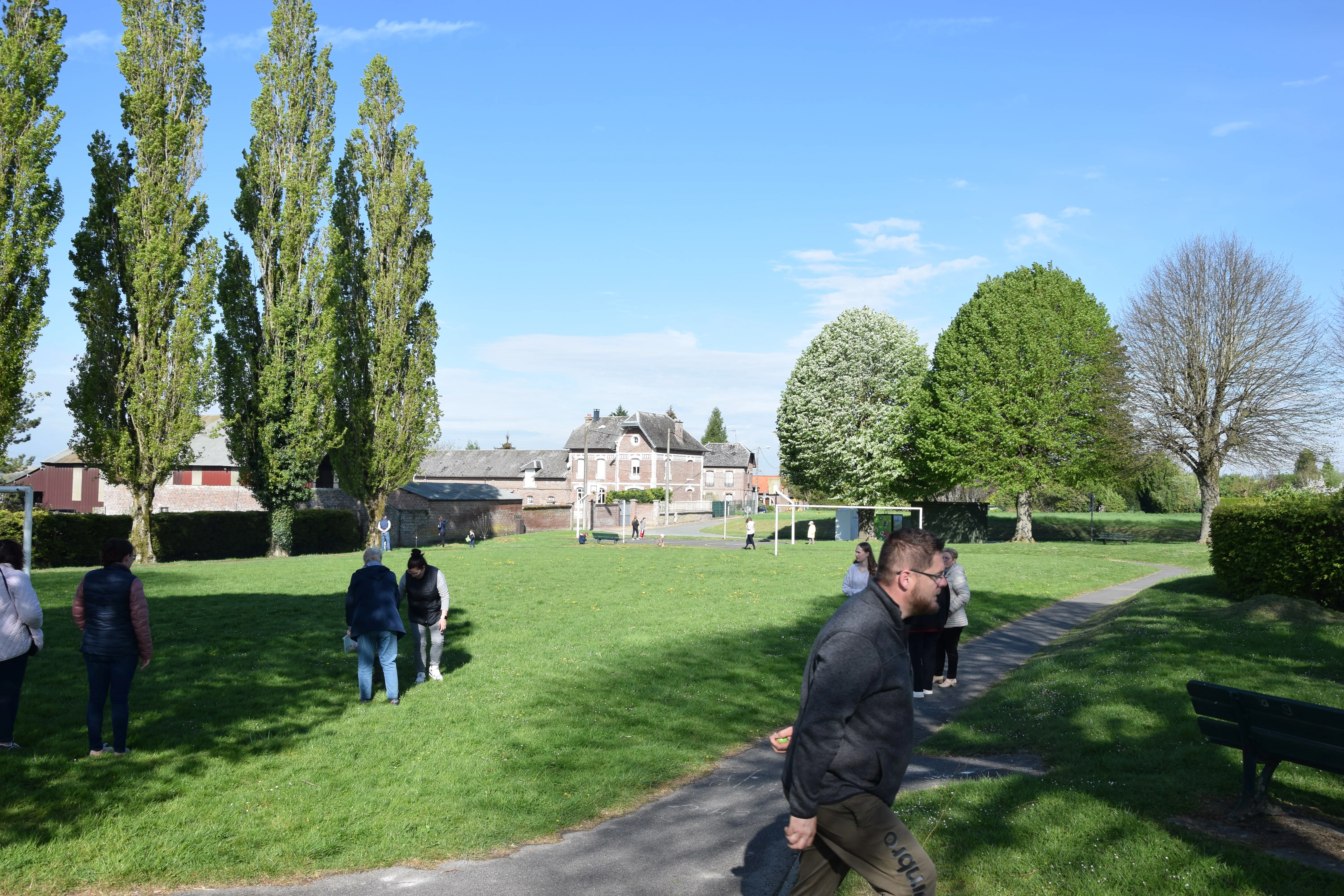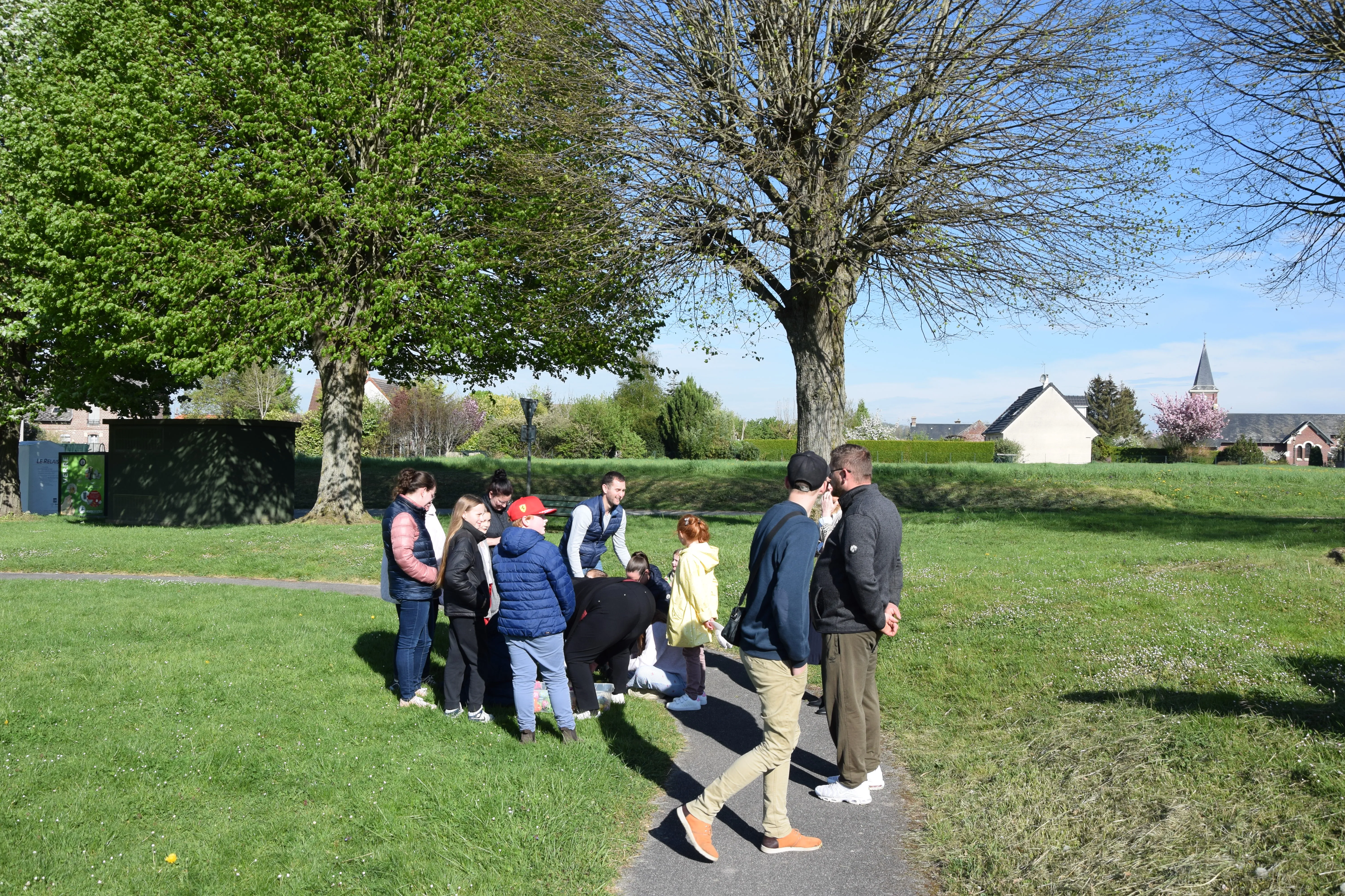 Une quinzaine d'enfants, accompagnés des parents ont participé à la chasse aux œufs sur le terrain de Francis SHERIDAN.