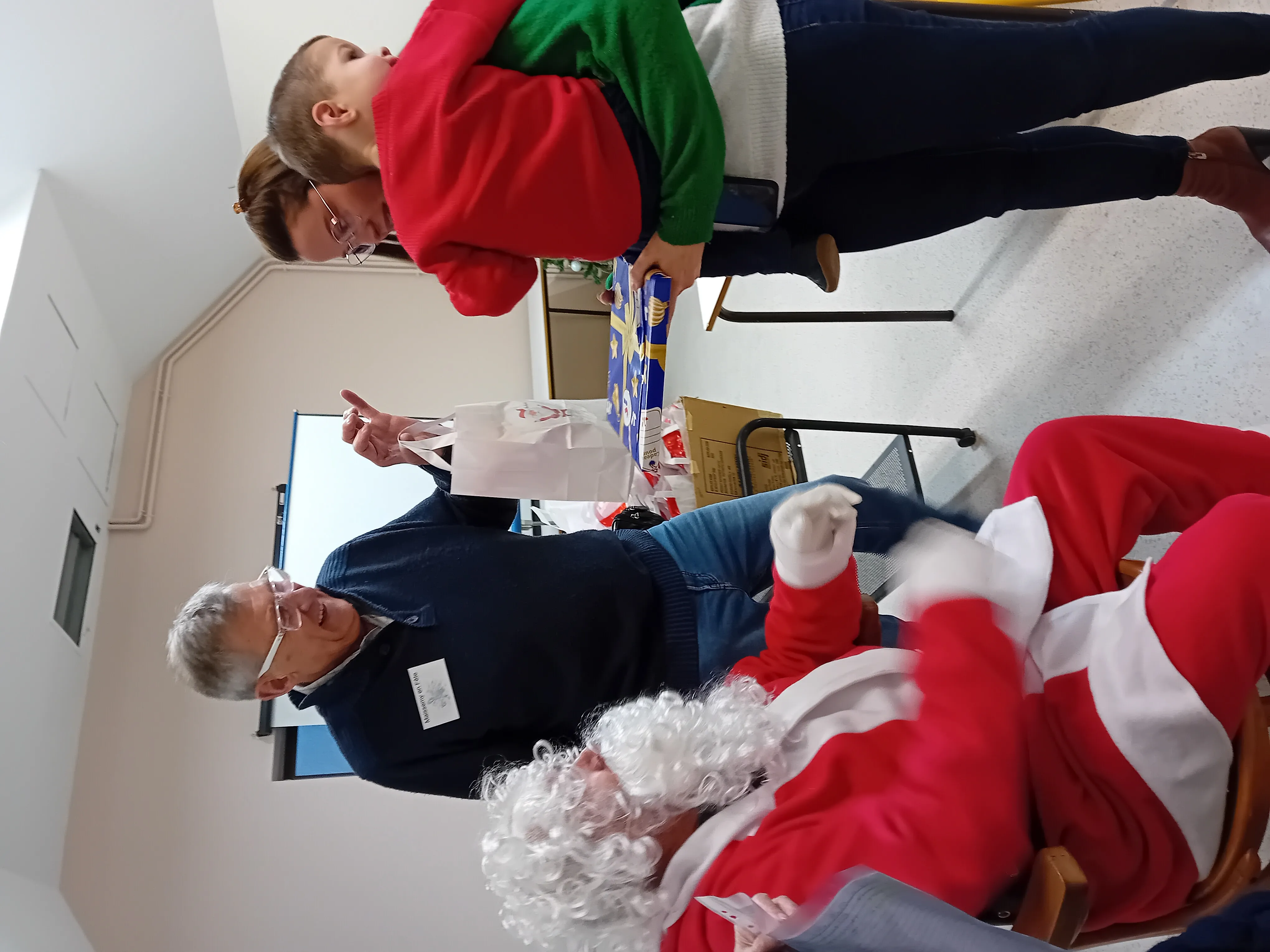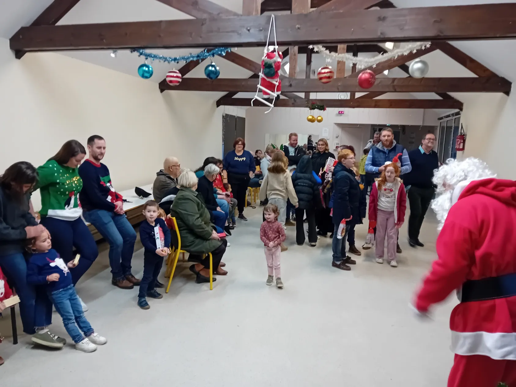 Après un goûter tout le monde petits et grands ont accueilli avec joie et chansons le Père NOËL.