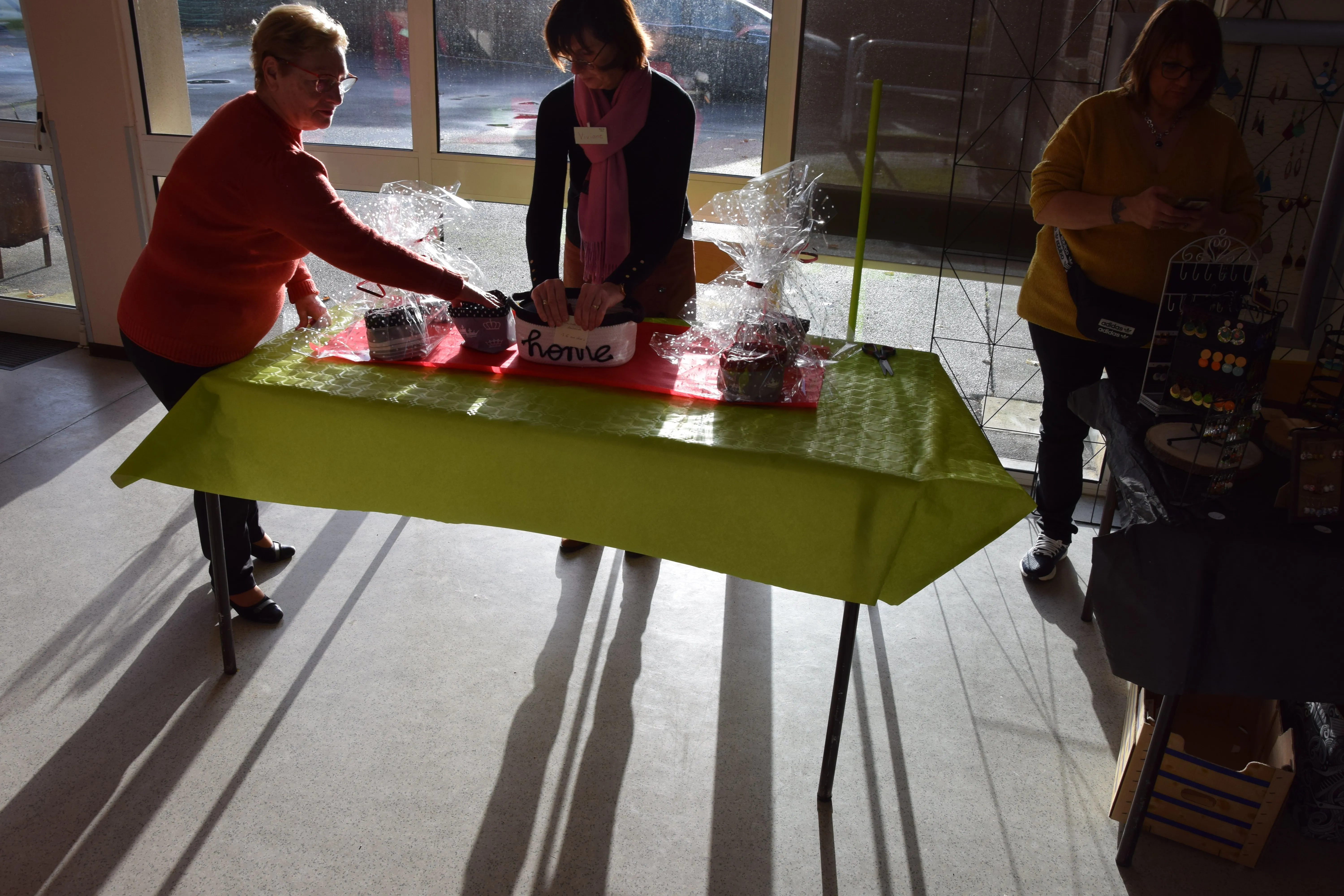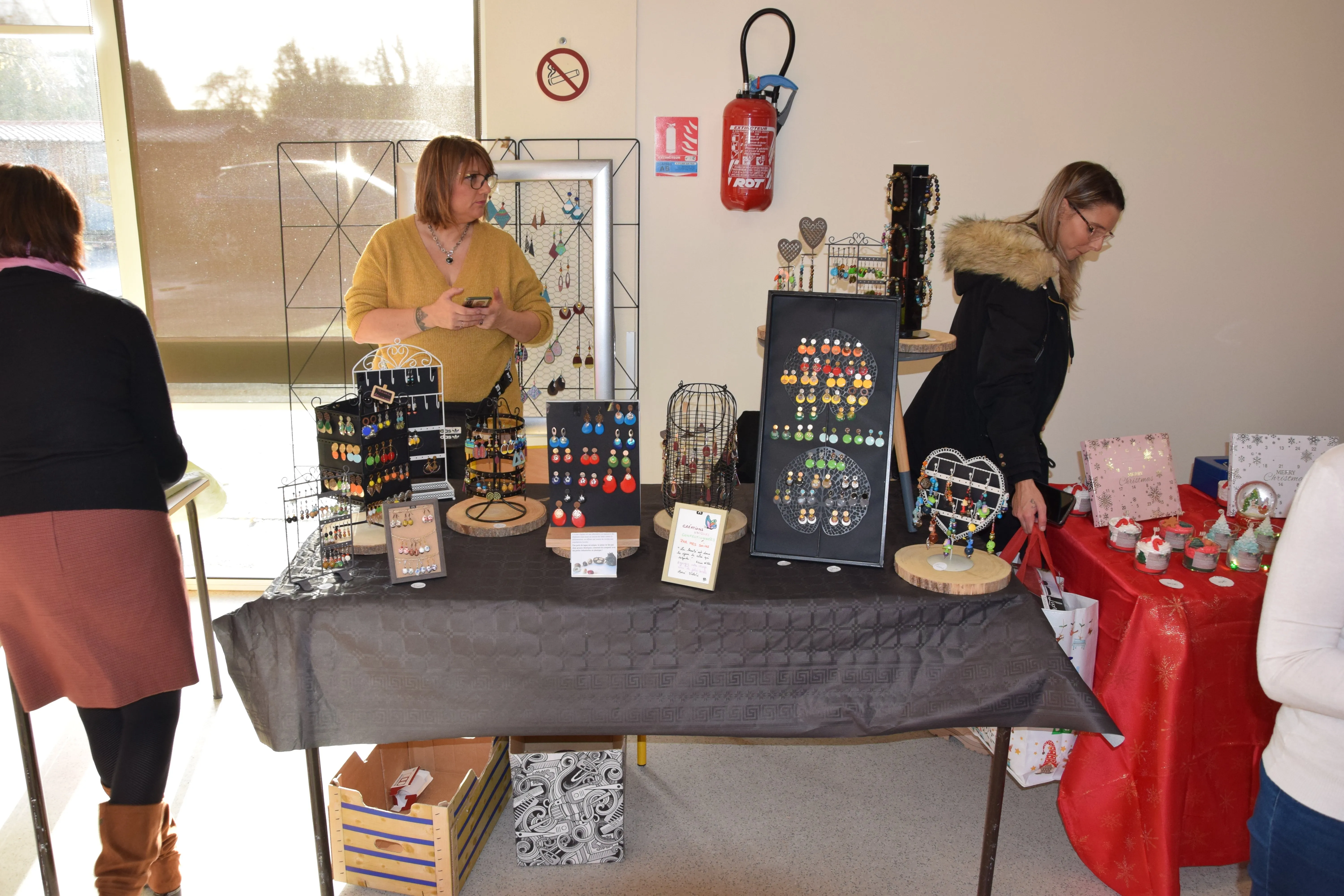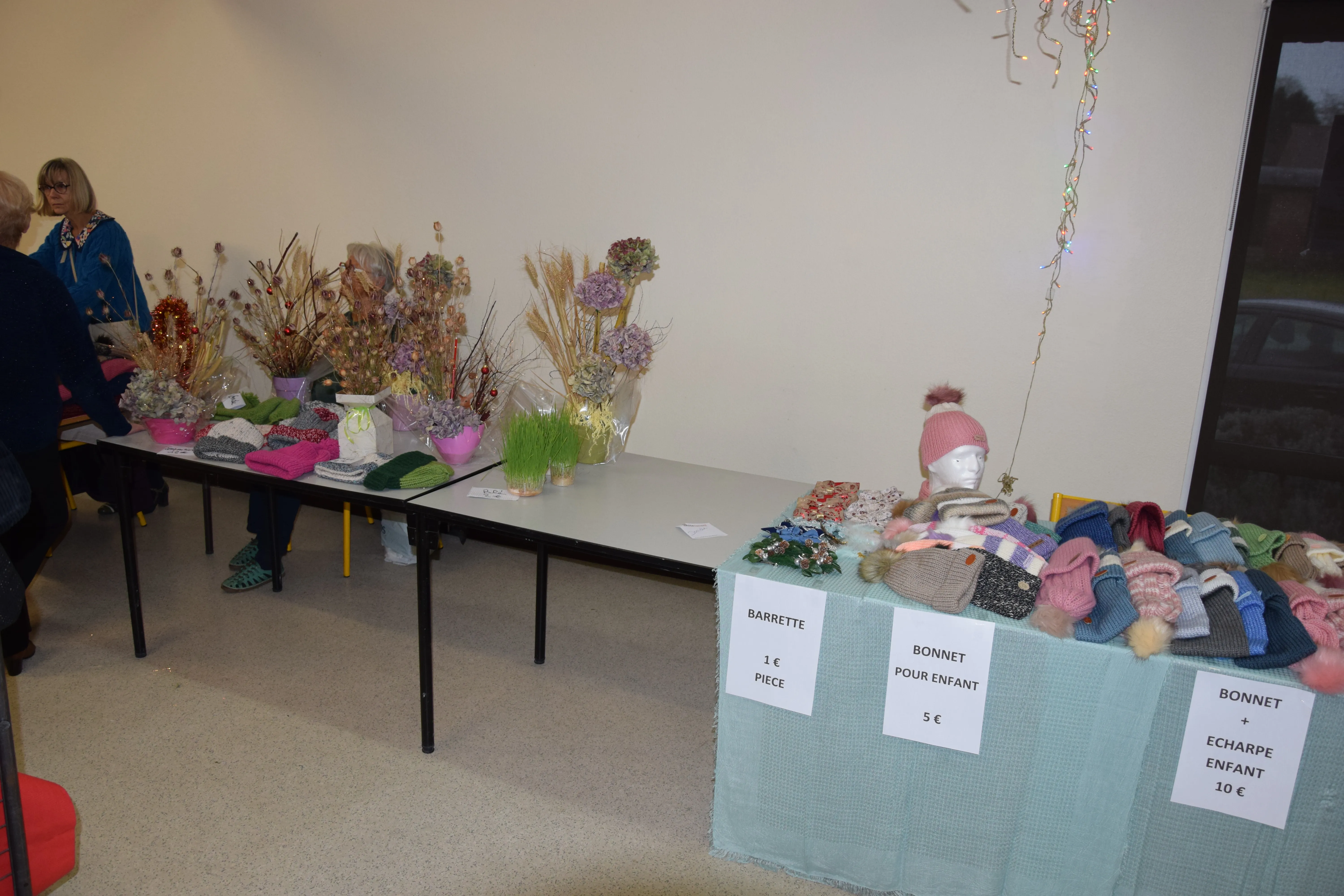les tables étaient garnies de jolies choses réalisées par les “vendeurs”, nous pouvons dire par les “artistes”
