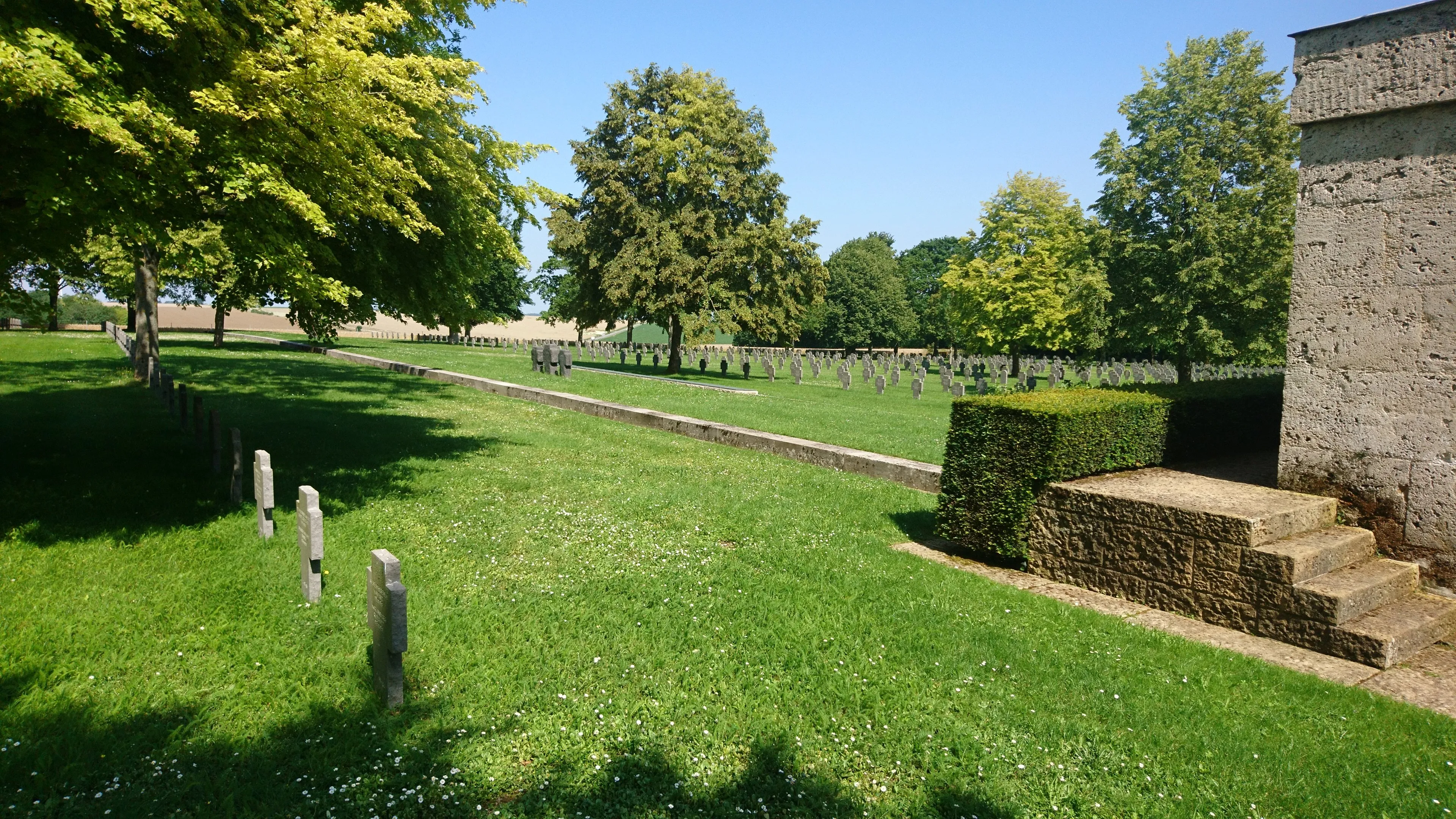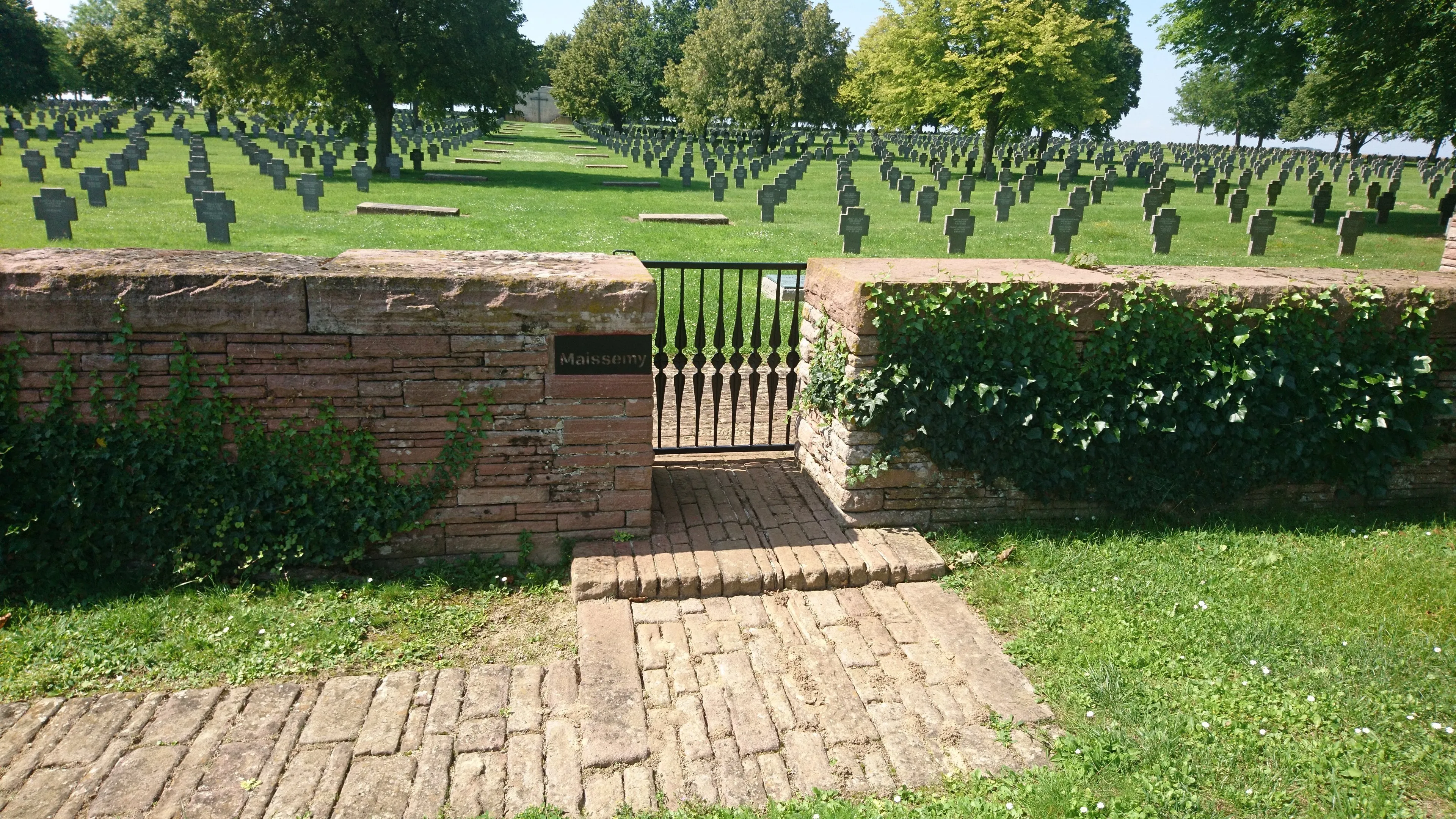 Le cimetière militaire allemand de Maissemy. Le cimetière militaire allemand est le deuxième plus important cimetière militaire allemand de France pour le nombre de morts inhumés après celui de Neuville-Saint-Vaast dans le Pas-de-Calais. 30 478 corps y sont inhumés. La majorité des hommes inhumés dans ce cimetière ont été tués entre la fin juin et novembre 1916, période de la bataille de la Somme, et au cours du printemps et de l'été 1918. D’abord enterrés dans le parc du château, alors propriété du docteur Luc ARBEL, les corps ont été déplacés à l’endroit du cimetière militaire actuel. Le docteur ARBEL ayant fait don à la commune de Maissemy d’un terrain qu’il possédait près de l’Omignon pour la translation du cimetière militaire. (Délibération du conseil municipal de Maissemy du 12 janvier 1920).